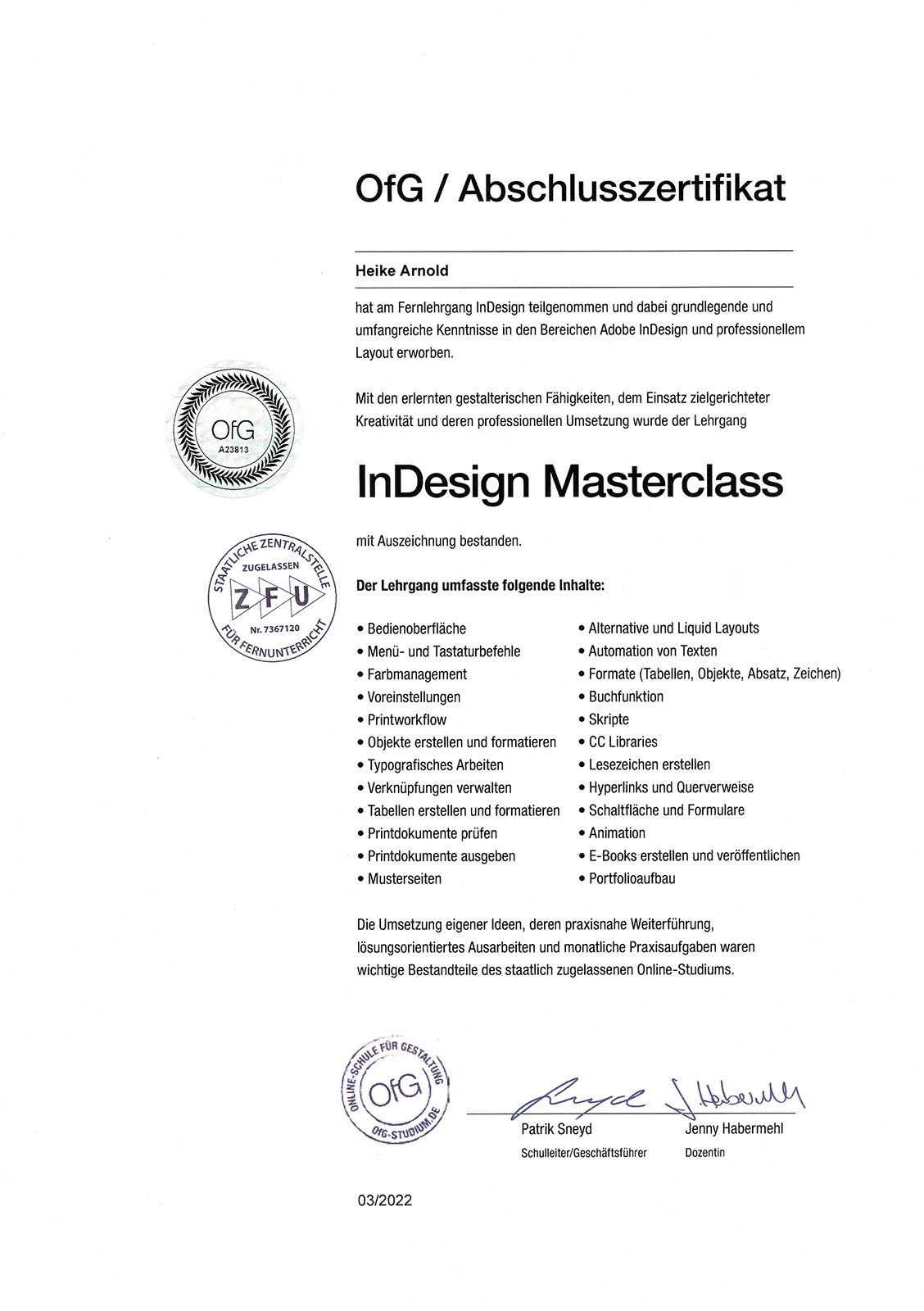 Online-Lehrgang "InDesign Masterclass" an der OfG Onlineschule für Gestaltung